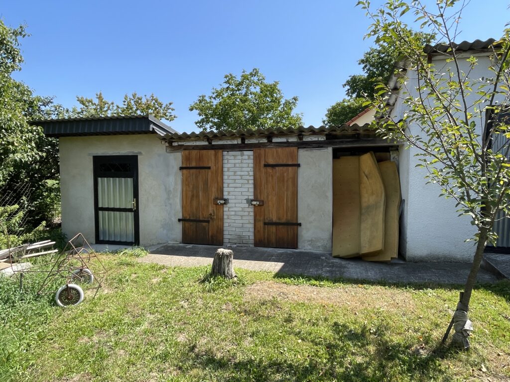Nebengebäude: Abstellraum, Scheunen, 2 Garagen.