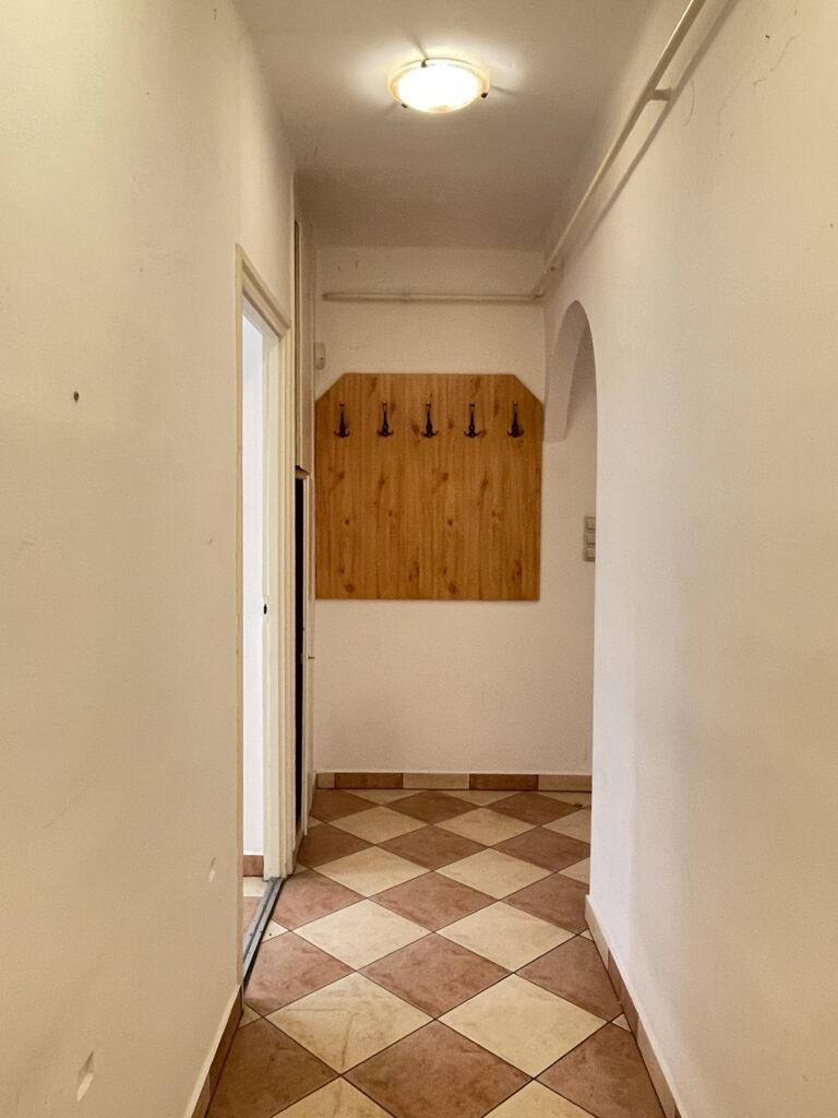 Die Wohnung in Ziegelbauweise verfügt über folgende Räume: Wohnzimmer, Küche, Speisekammer, Schlafzimmer, Flur, Badezimmer, WC und Balkon.