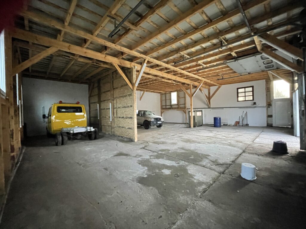A csarnok hőszigetelt panel falazatú, bármilyen raktározásra alkalmas. Az udvarból nyíló teleszkópos, elektromos kapu 3 méter széles és 3,8 méter magas.